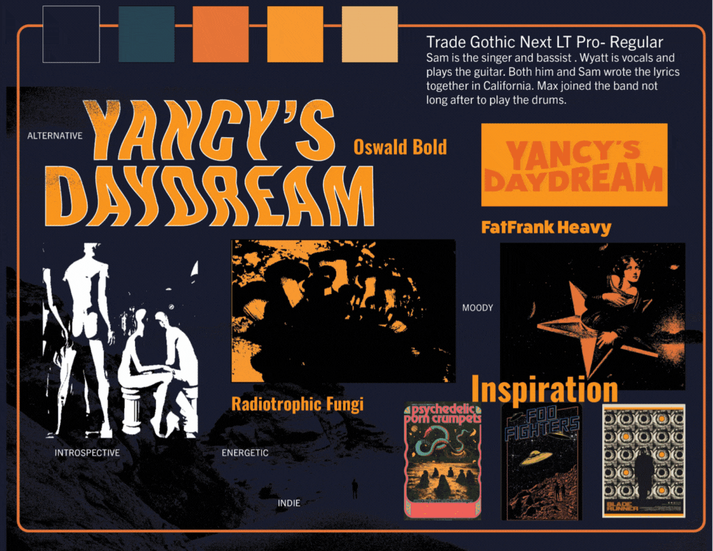 Yancy’s Daydream is an album design project that builds a visual world around the band’s spacious and emotional sound. The design reflects the band’s journey from writing in Seattle to recording in Nashville